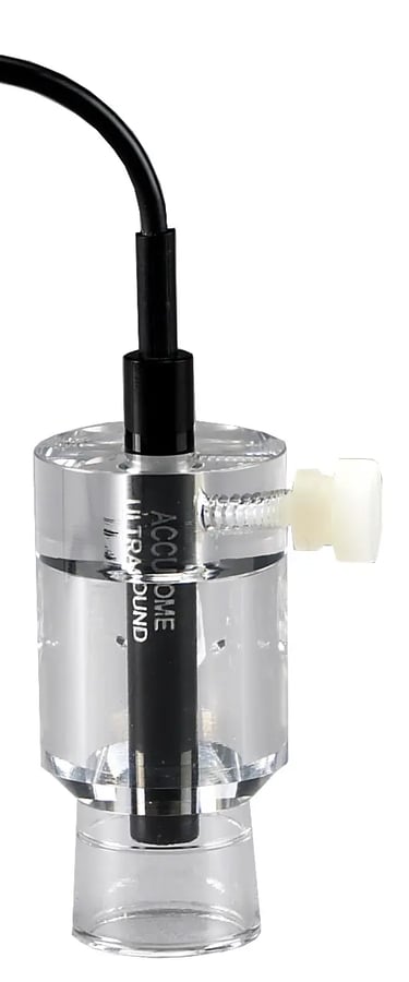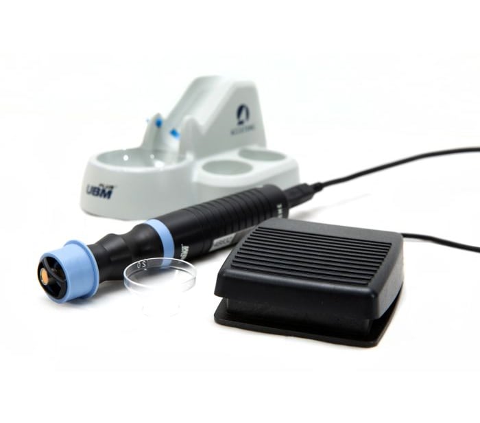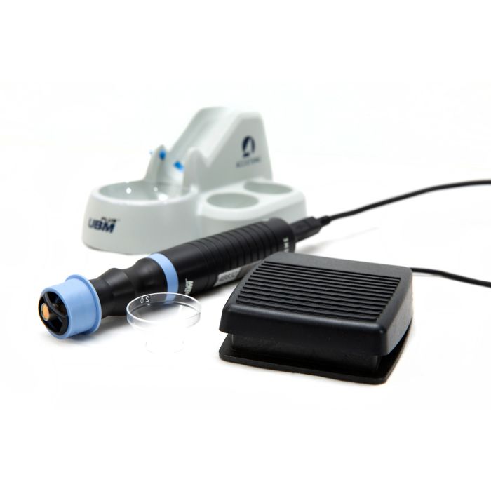 La sonda UBM Plus tiene una punta protegida para evitar daños tanto al paciente como a la sonda. El UBM Plus se utiliza para la obtención de imágenes del segmento anterior. Esta unidad es un dispositivo increíblemente portátil porque la sonda de 48 MHz se conecta directamente a cualquier computadora portátil o de escritorio con Windows™. Esta unidad cuenta con un diseño de sonda todo en uno para eliminar la pérdida de señal y proporcionar las imágenes más nítidas posibles. Accesorios incluidos: Instalación de software, memoria USB, soporte de sonda, interruptor de pie, mouse inalámbrico, gel oftálmico y carcasa escleral
