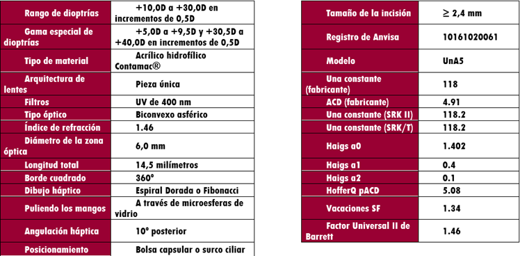 UnA es la única LIO que satisface todas las necesidades quirúrgicas. La función principal de la lente intraocular UnA es reemplazar el cristalino natural, que se vuelve opaco debido a las cataratas, perjudicando la visión del paciente.