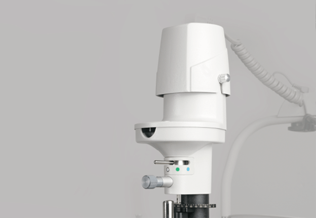 El tonómetro de planeación se combina con la mayoría de las lámparas de hendidura: la medición se puede realizar en el paciente sentado en la lámpara de hendidura junto con otros exámenes microscópicos de rutina.