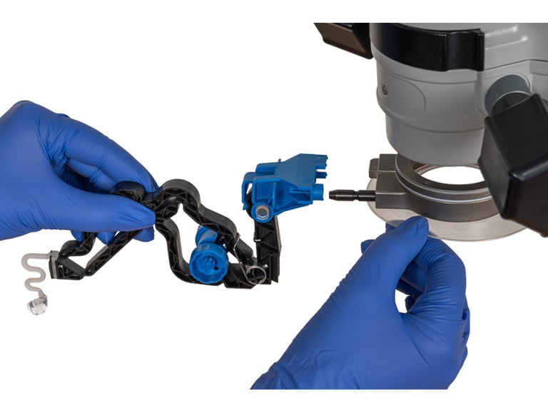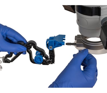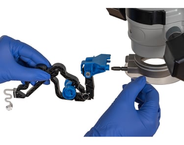 El accesorio al microscopio quirúrgico ofrece un posicionamiento de la lente consistente, repetible y estable.